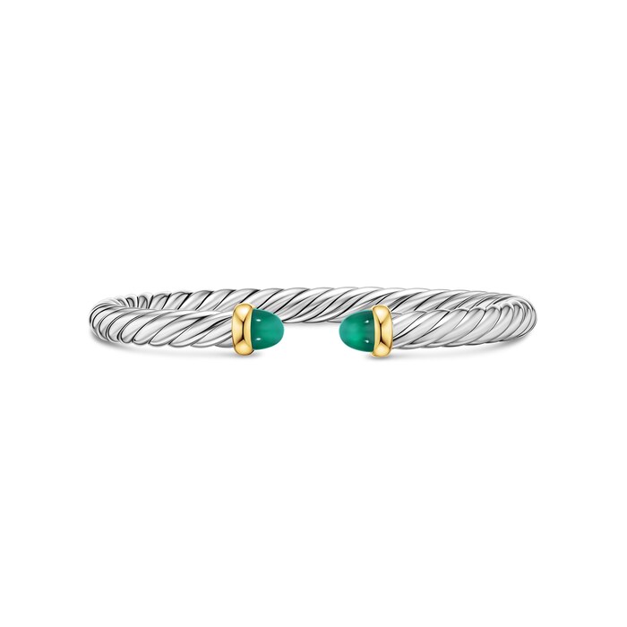 David Yurman Cable Flex Bracelet In Sterling Silver And 14ct Yellow Gold With Green Onyx, 6mm - Size Large MPN: B18729 S4BGOL