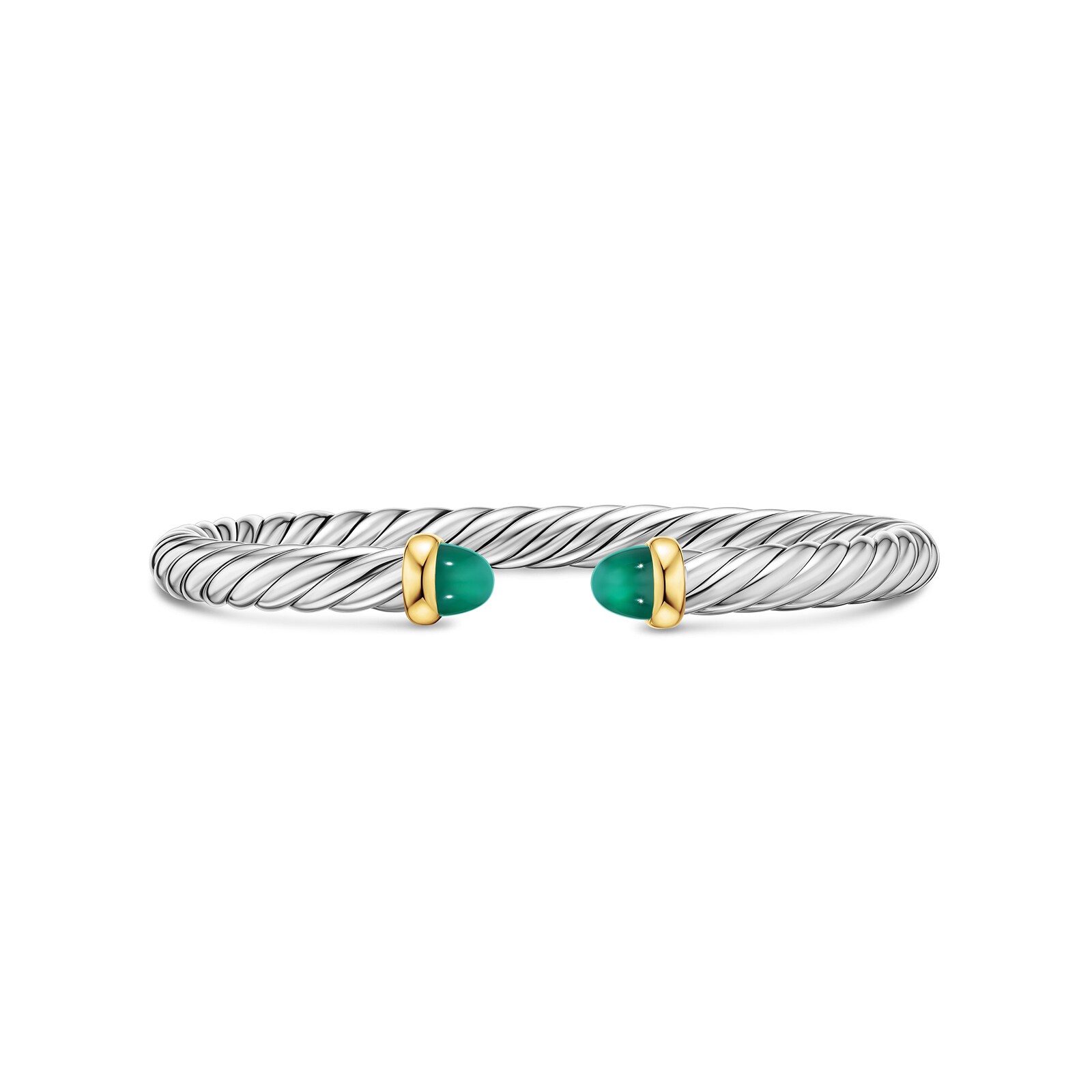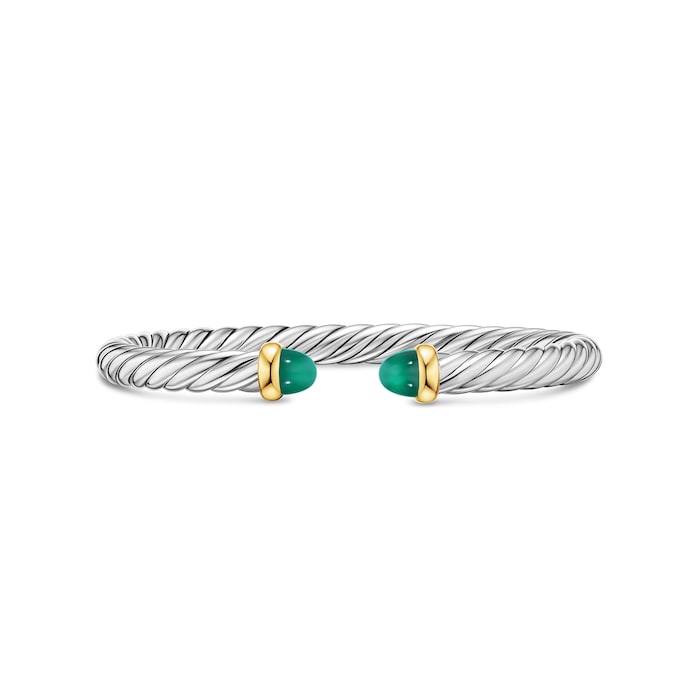 David Yurman Cable Flex Bracelet In Sterling Silver And 14ct Yellow Gold With Green Onyx, 6mm - Size Small MPN: B18729 S4BGOS