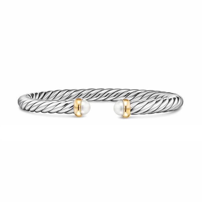 David Yurman Cable Flex Bracelet In Sterling Silver And 14ct Yellow Gold With Pearl, 6mm - Size Medium MPN: B18729 S4BPEM