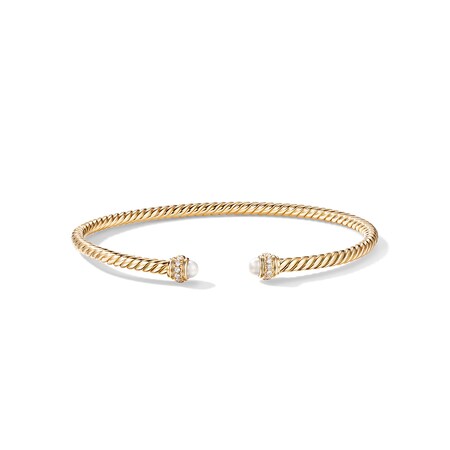 David Yurman Classic Cablespira® Bracelet in 18ct Yellow Gold with Pearls and Diamonds, 3mm - Size Medium MPN: B13767D88DPEDIM.