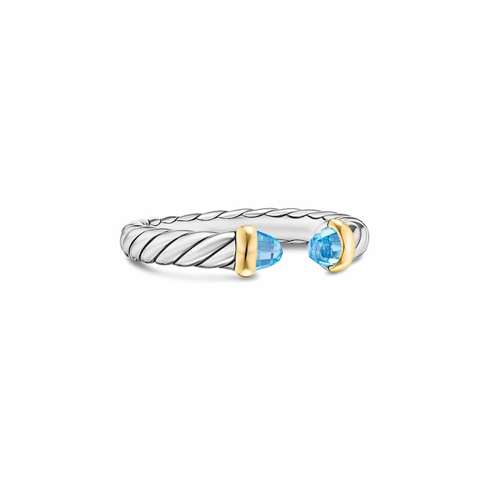 David Yurman Petite Cable Open Ring In Sterling Silver And 14ct Yellow Gold With Blue Topaz, 3.4mm - Size 7 MPN: R18268 S4ABT7