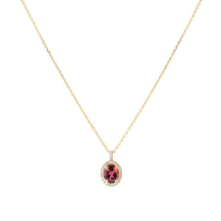 Mappin Webb Amelia 18ct Yellow Gold Pink Tourmaline 0.13cttw Diamond Pendant