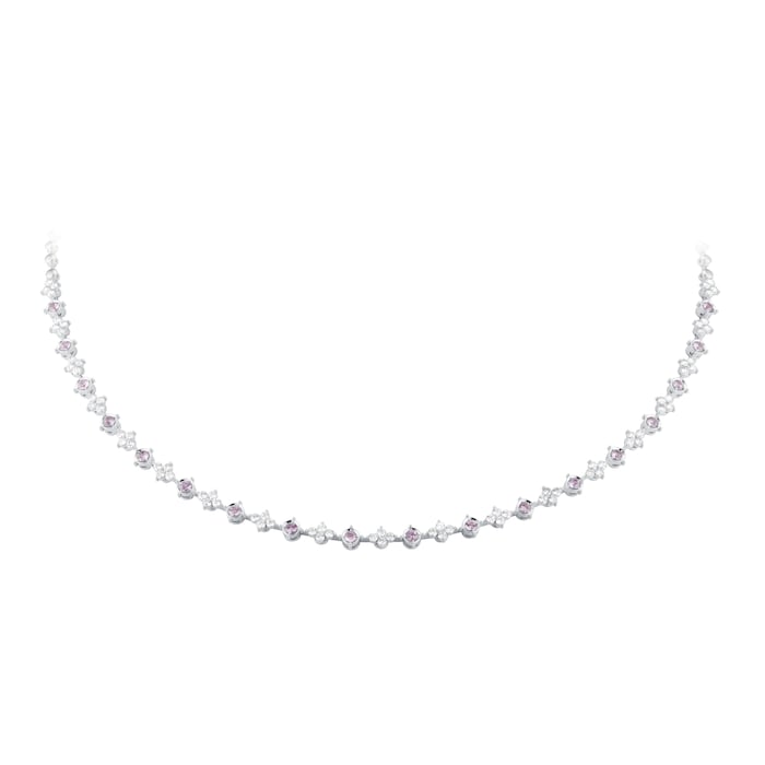 - Necklace in 18ct white gold with round brilliant cut diamonds and pink sapphires