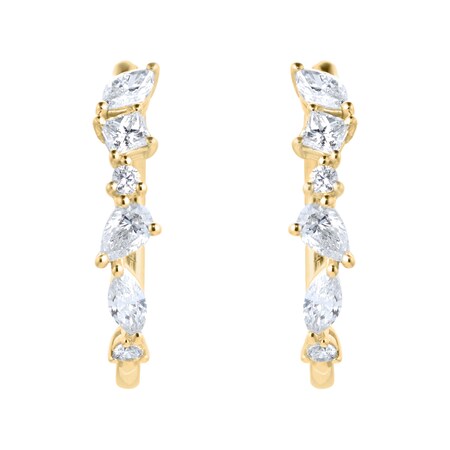 These hoop earrings are sculpted in 18ct yellow gold and adorned with 1.00ct of mixed cut diamonds. The interplay of shapes creates a dynamic silhouette, offering a delicate yet striking presence. Designed to elevate both day and evening wear, they reflect the artistry and elegance of the Riveret line.